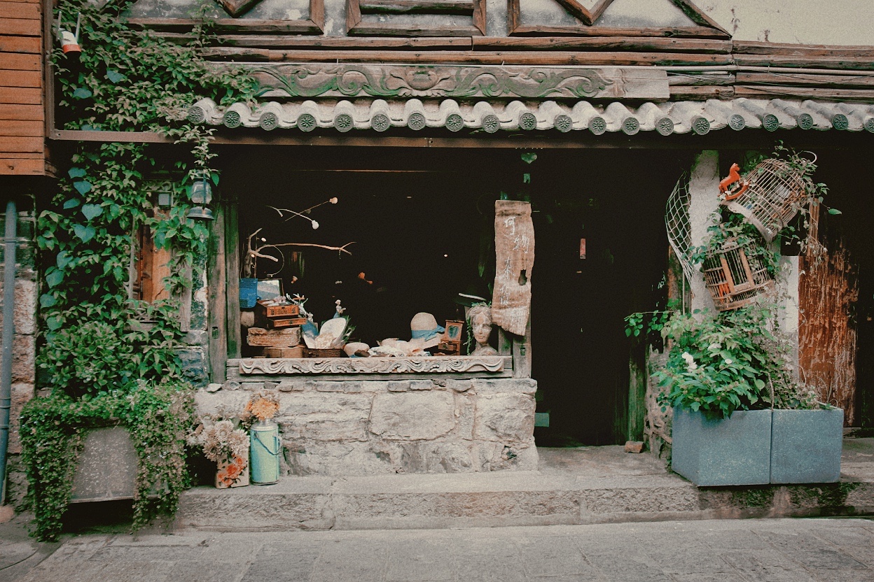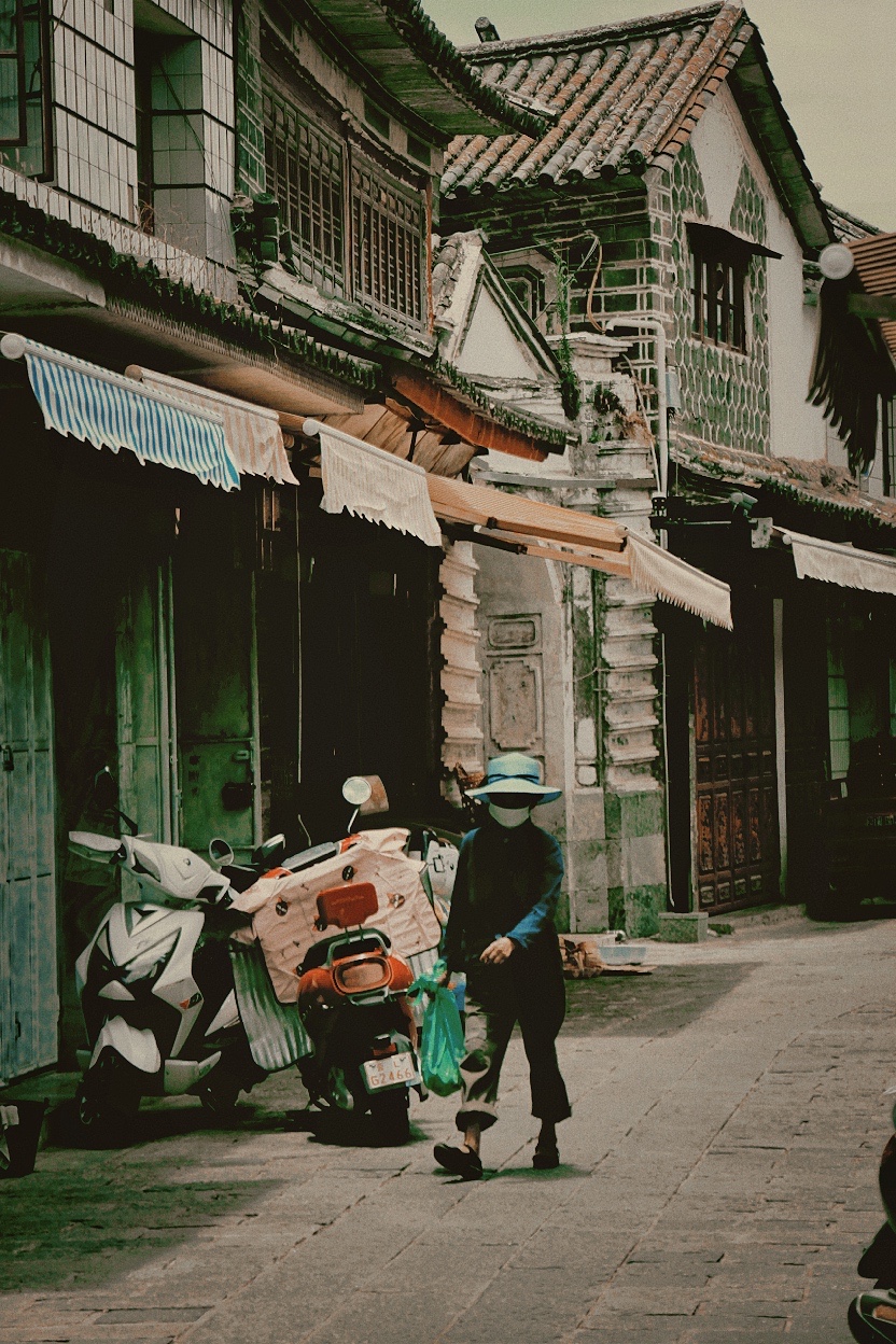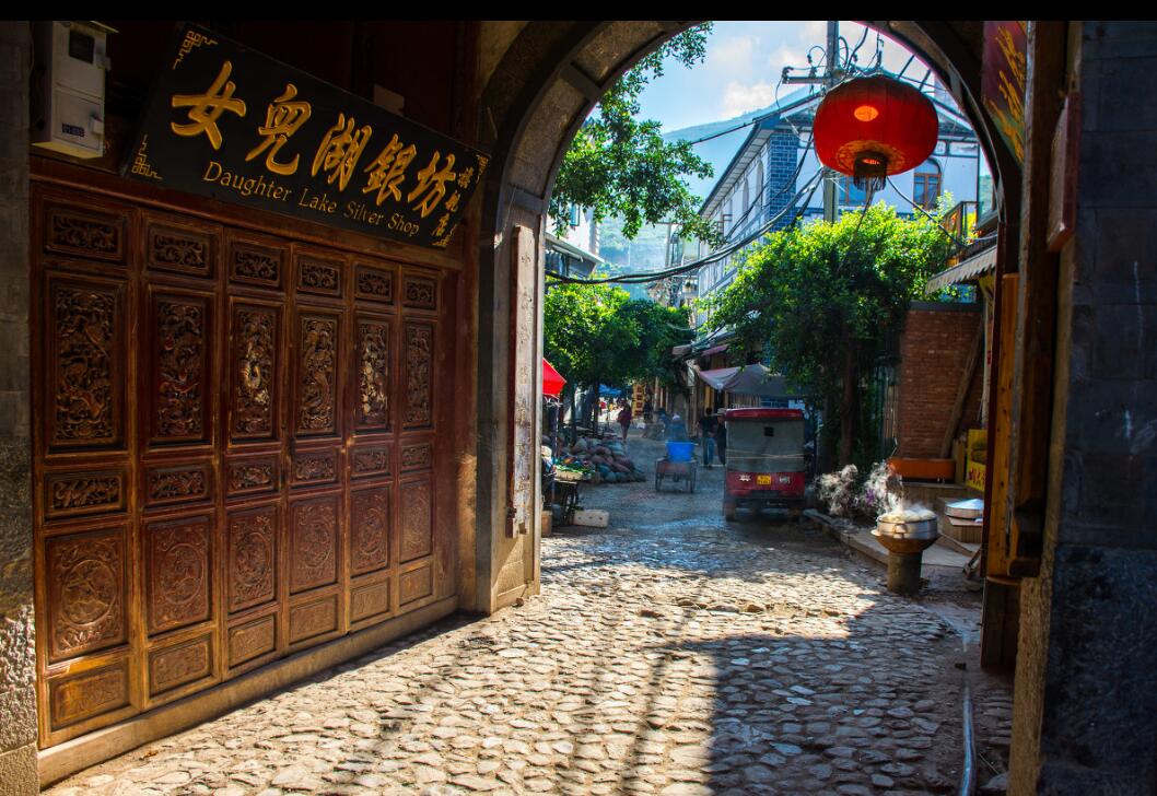 早晨,可包车也可在古城里租上电动车,从大理古城出发,第一站来到喜洲古镇,这是大理白族文化主要发祥地之一,老舍先生也曾在《滇行短记》里这样写道“喜洲却是个奇迹。我想不起,在国内什么偏僻的地方,见过这么体面的市镇……街道很整齐,商店很多。有图书馆,馆前立大理石牌坊,字是贴金的;有警察局,有像王宫似的深宅大院,都是雕梁画柱。有许多祠堂,也都金碧辉煌。” 走进喜洲古镇蜿蜒清幽的小巷,踏过幽长的被岁月打磨的青石板小路,走过虚掩着古旧木门的老屋,一切都是那么的淡泊安然。现世的浮华已经沉入那古朴寂静的古巷深处。许我一段时光,邂逅一段悠悠往事。