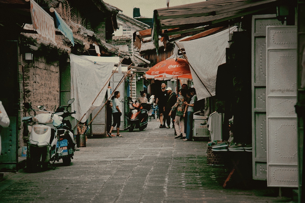 凤阳邑坐落于苍山脚下,新建的白族民居与茶马古道只有一墙之隔,但从进入茶马古道那一刻开始,身心已经步入另一个历史时空,恍若隔世。随着驳斑古仆的石头路往村子里走,两边都是颇有年份的土墙穿插着很多小巷,村子里游客很少,多是本地老人在路边闲坐聊天。这里更多的是来自天南海北乃至世界各地身怀技艺和有情怀的人们驻扎于此,过着简朴自得的乡野生活。