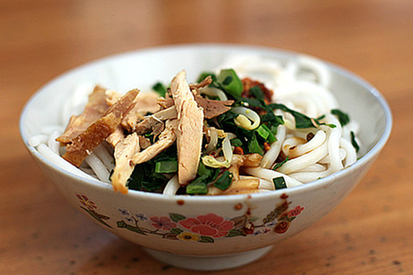 2、人民路上的再回首凉鸡米线,一碗凉鸡米线加一份卤鸡皮,那简直是绝配;